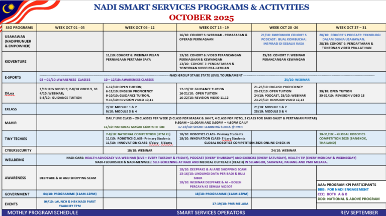 4 July 2025 TARIKH / HARI PROGRAM ISNIN E-SERVICES / KEUSAHAWANAN / KESEJAHTERAAN KENDIRI / CYBERSECURITY SELASA E-SERVICES / KEUSAHAWANAN / MAHIR RABU E-SERVICES / KELAS ICT / KESEJAHTERAAN KENDIRI / MAHIR KHAMIS DAN JUMAAT E-SERVICES / MAHIR / CYBERSECURITY / […]