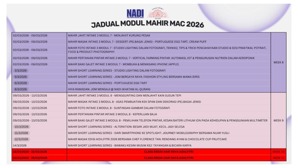 JADUAL AKTIVITI MARCH 2026