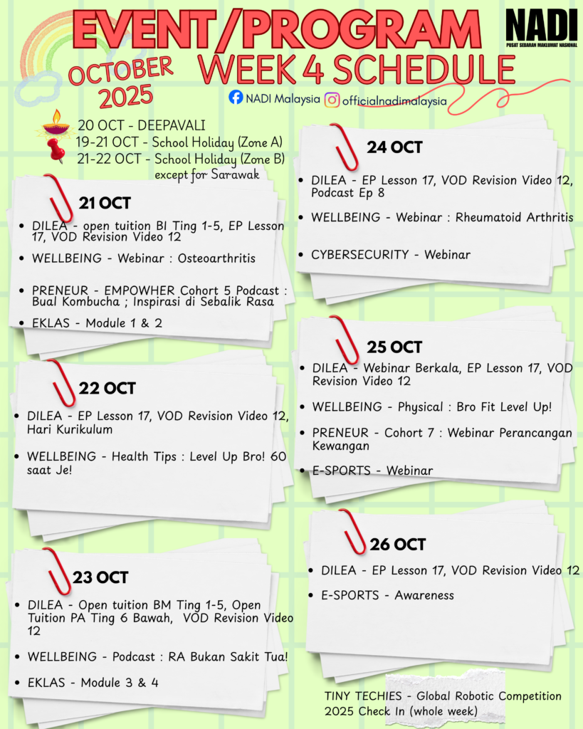 | SABTU DAN AHAD | E-SERVICES / KELAS ICT / TINYTECHIES / DILEA / MAHIR |