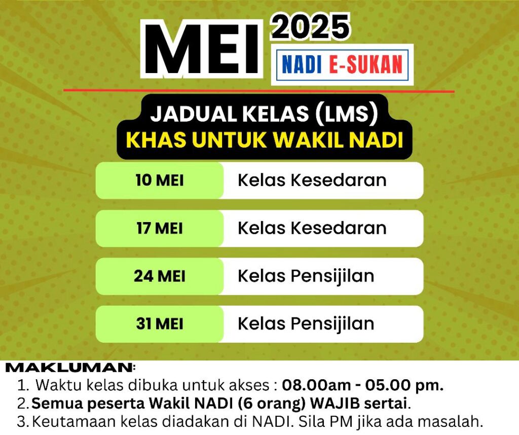 TARIKH : 10, 17, 24 & 31 MEI 2025